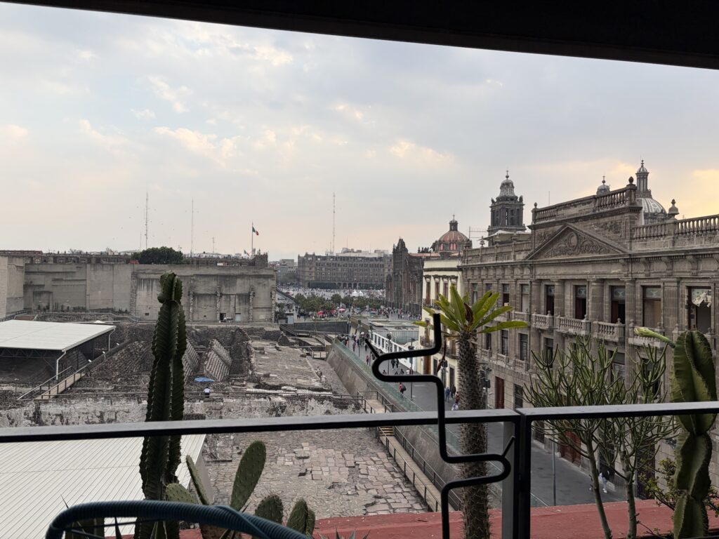 Another balcony, yes. But this one felt right. Transparent pricing. Professional staff. A clean, elevated atmosphere. It overlooked the Templo Mayor ruins and the cathedral, and this time, we didn’t feel scammed.